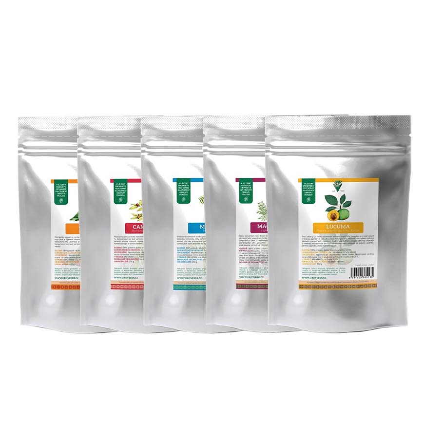 Sada 4 ks, celkem 1 kg, MACA TRICOLOR KOUSKY (Lepidium meyenii Wallp.) směs bílé,černé a červené maky - doplněk stravy.