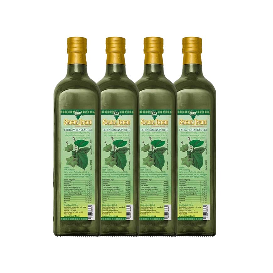 1 litr Oleje Sacha Inchi ( SET 4x 250 ml ) - Panenský olej lisovaný ze semen rostliny Sacha Inchi (Plukenetia volubilis L.) - doplněk stravy